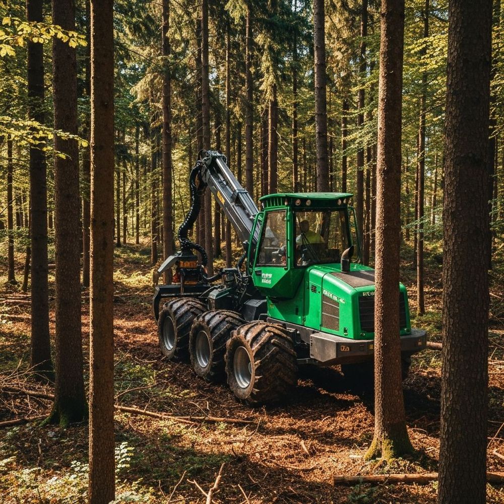 Máquinas especializadas para tala, procesamiento y transporte.